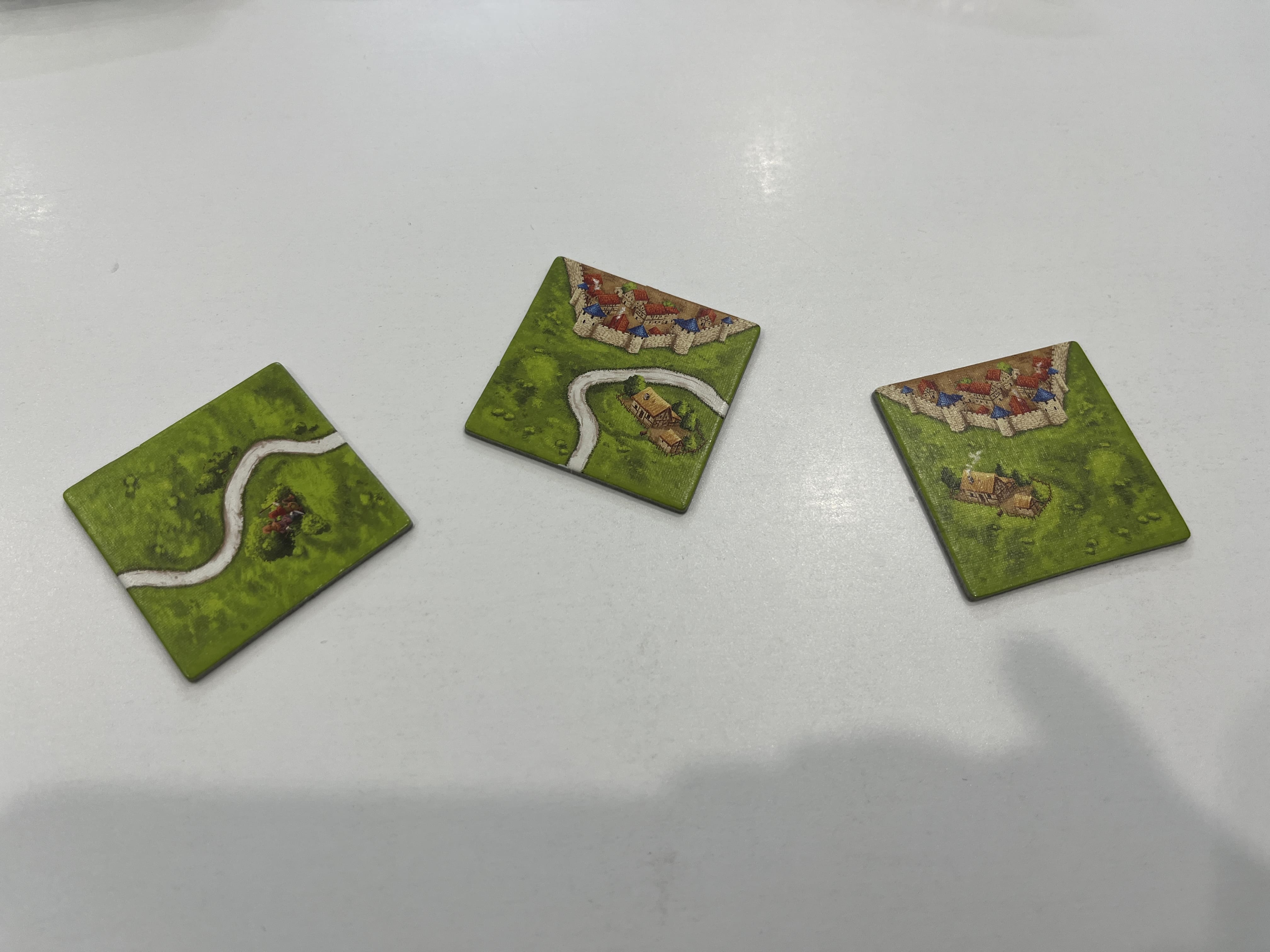 - 타일을 한 장씩 뽑아, 지형이 연결되도록 붙여갑니다.