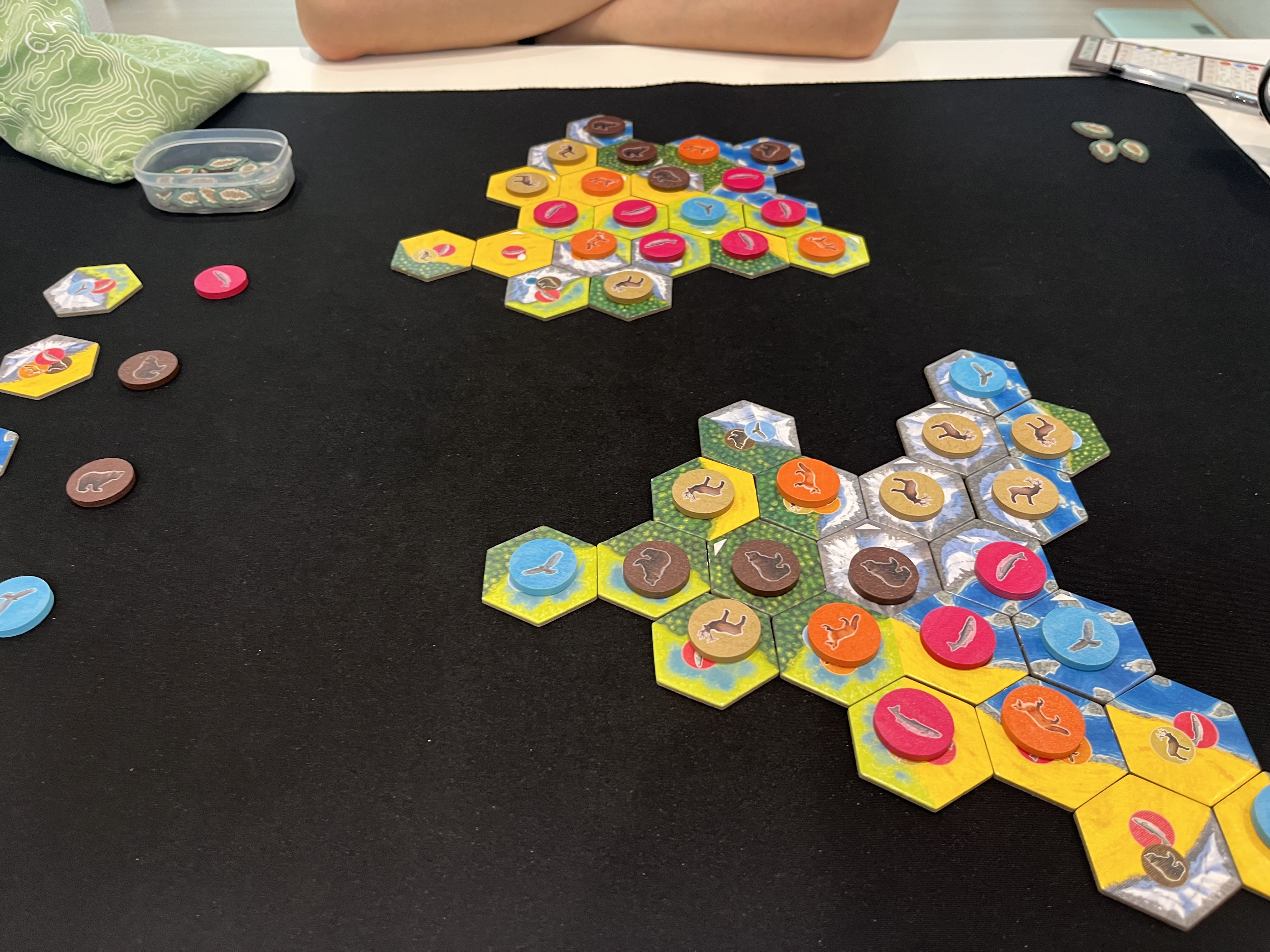 - 배치: 서식지 타일은 기존 타일과 붙여 배치하고, 동물 토큰은 해당 지형에 맞게 올려놓습니다.