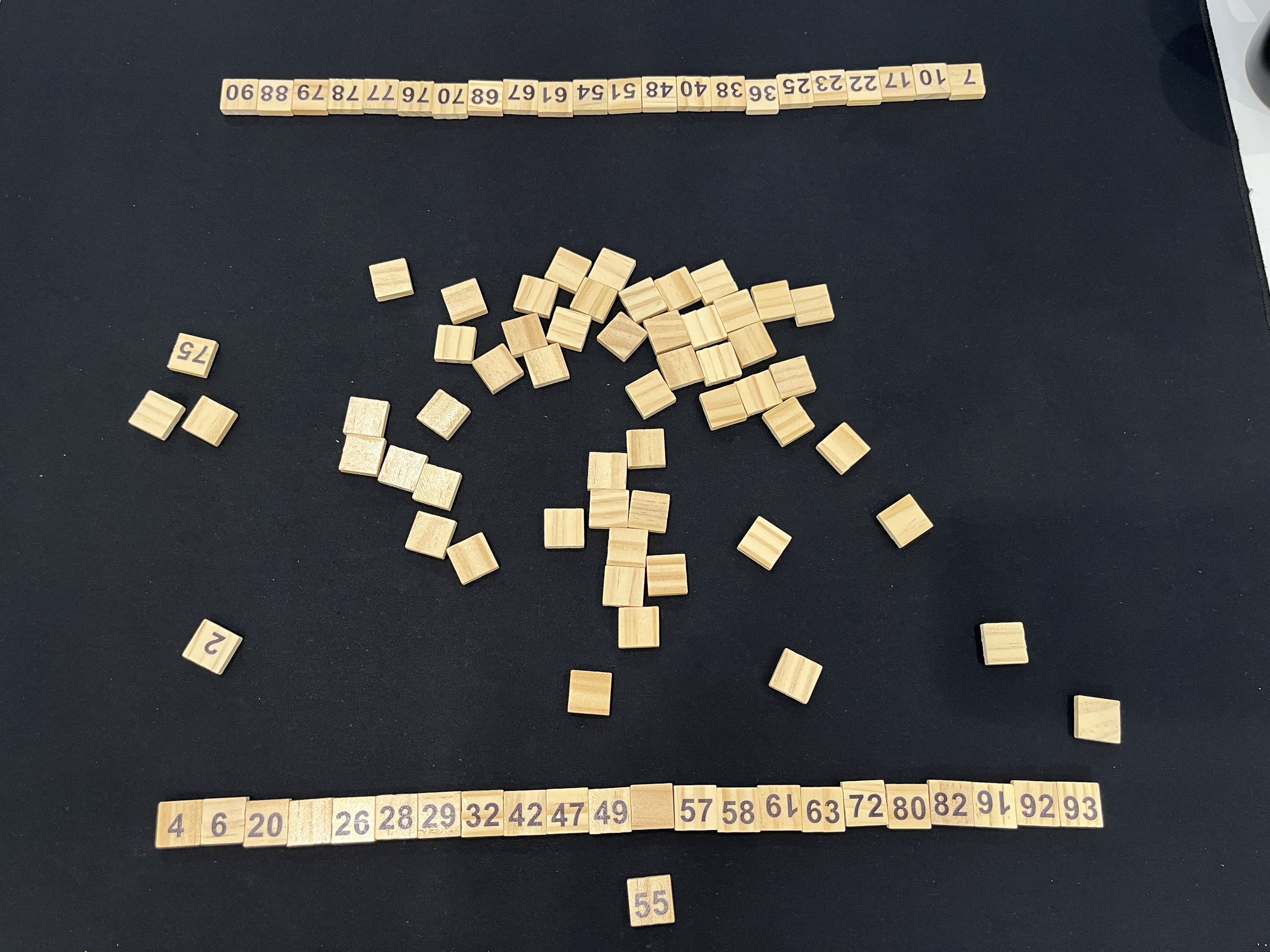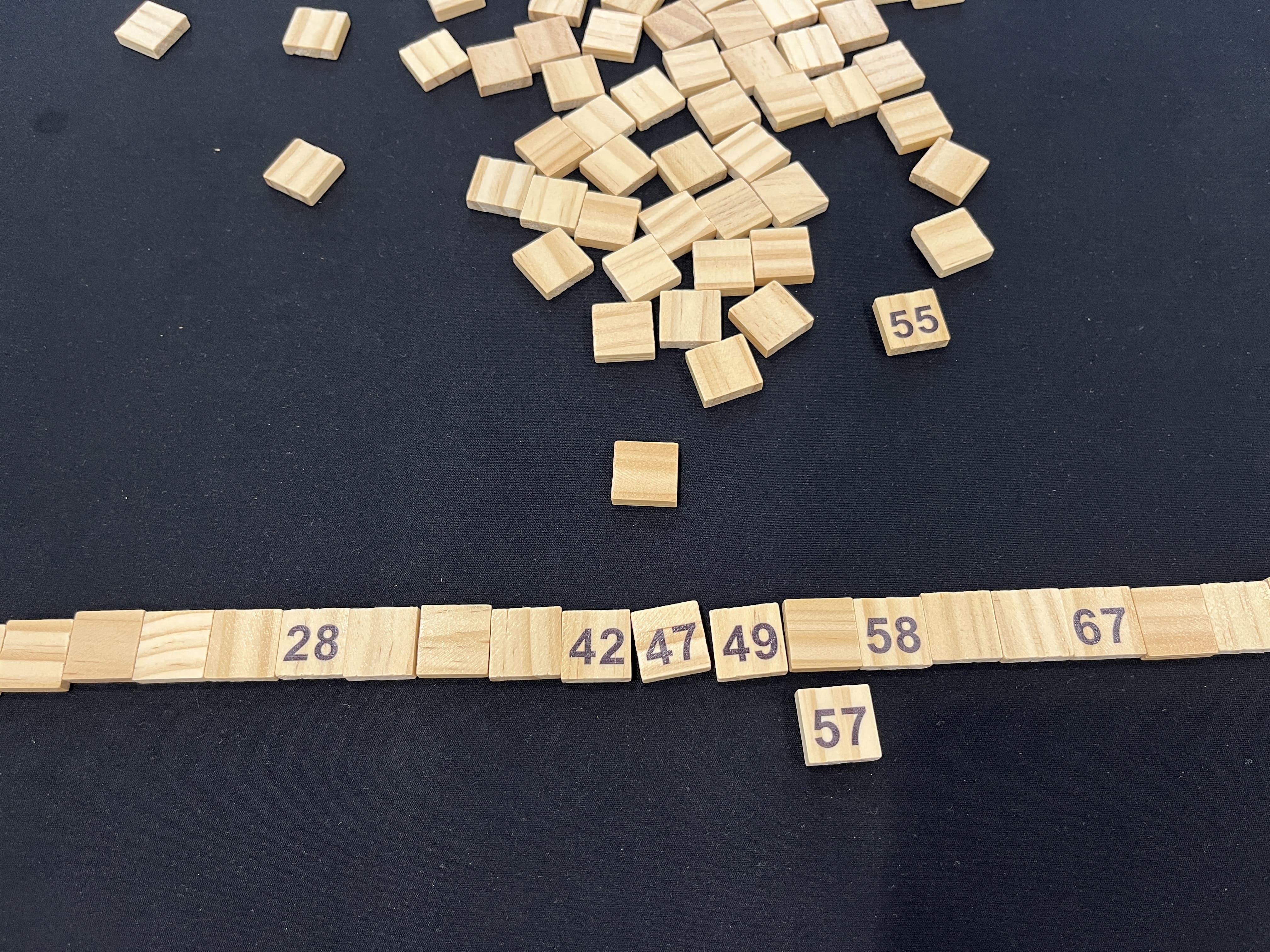 1부터 100까지 숫자가 적힌 타일 중 22개를 가지고, 오름차순으로 배열만 하면 끝입니다.