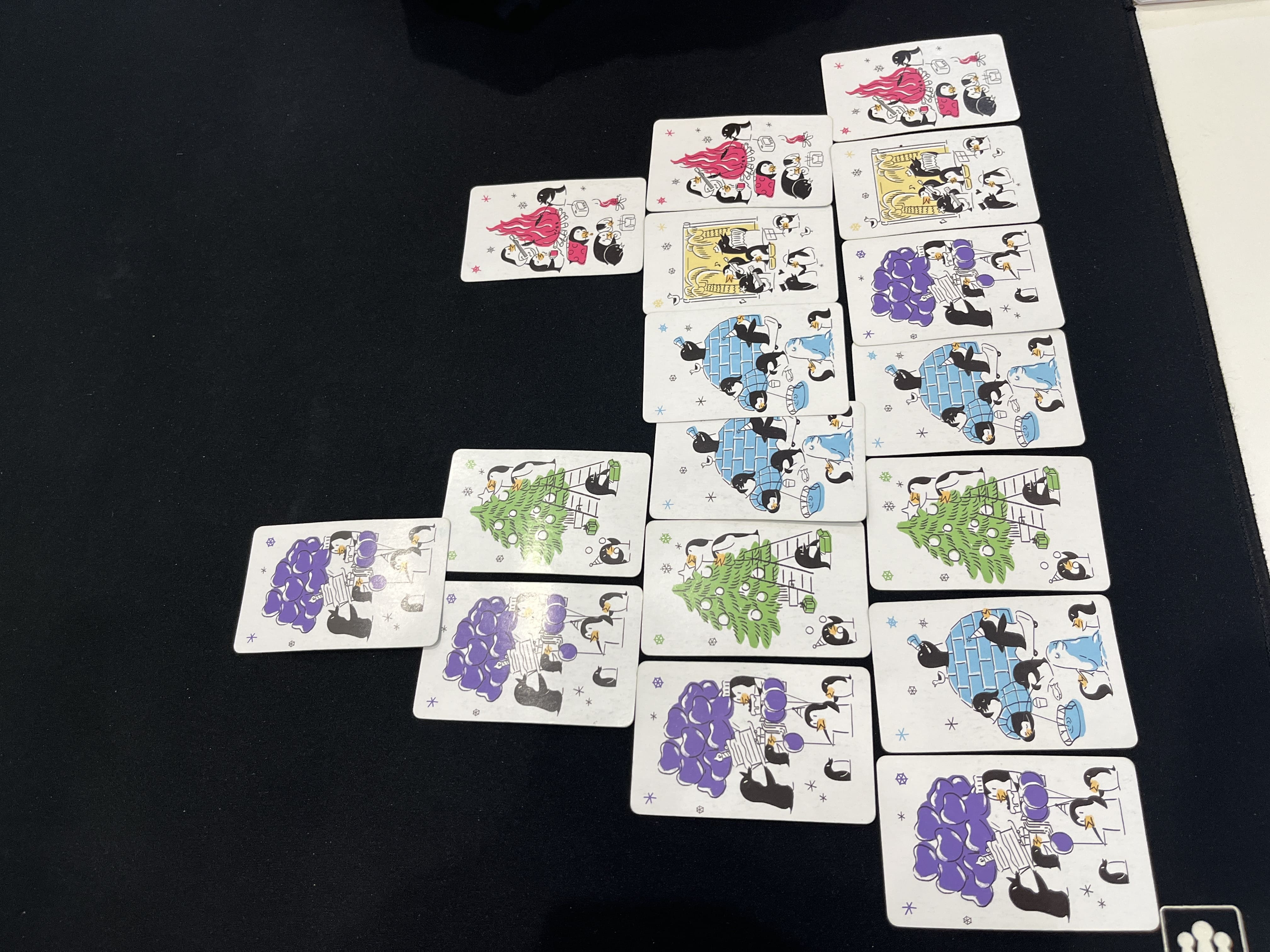 - 같은 색깔의 펭귄 카드를 아래에 있는 카드 위에 올릴 수 있습니다.