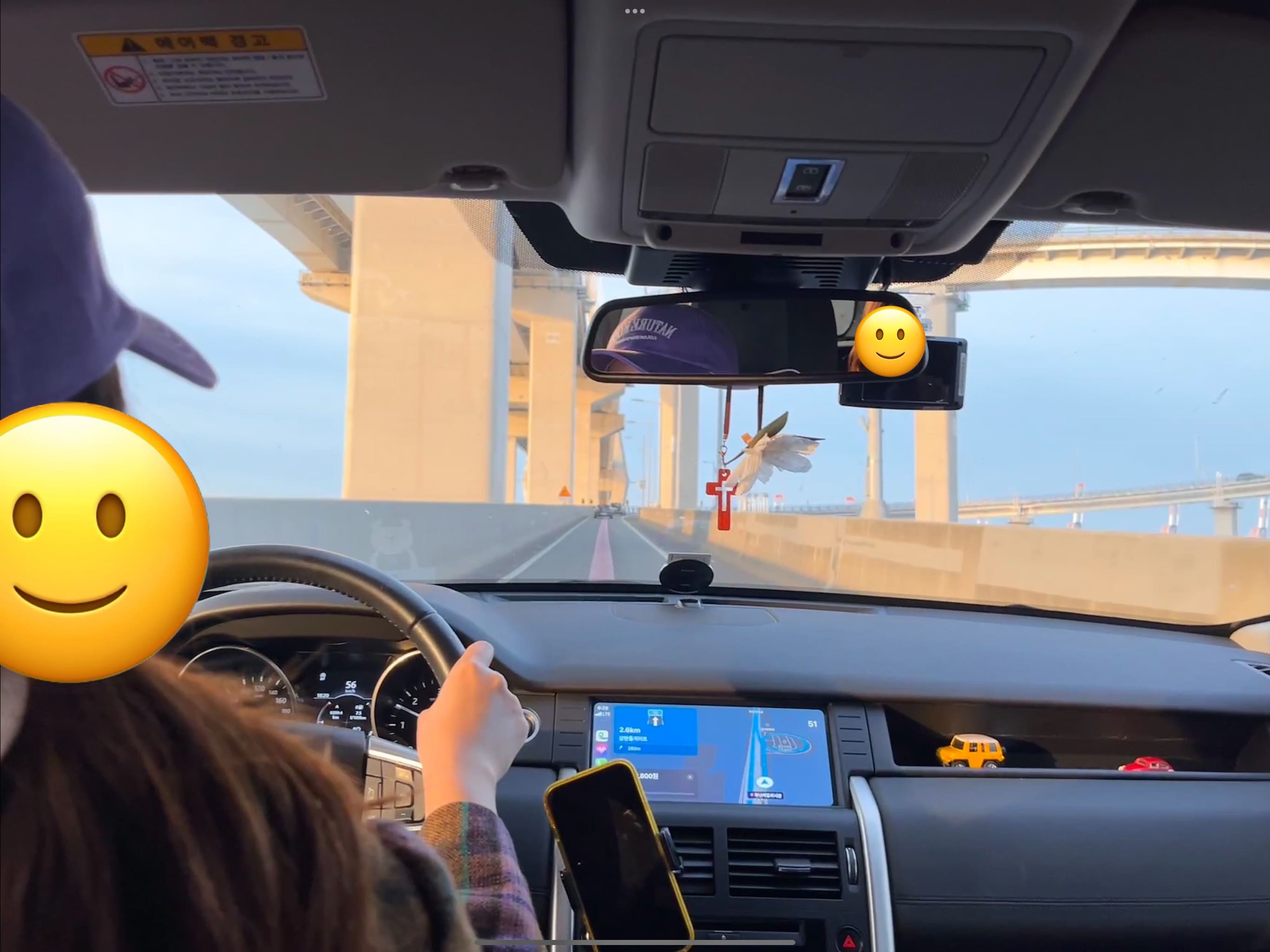 여행 시작부터 예상치 못한 곳에서 아찔한 경험을 했어요. 내비게이션을 잘못 들었는지, 아니면 여행의 신이 도왔는지, 우리는 그 유명한 부산항대교에 올라타게 되었습니다. 바다 위에서 곡예를 하듯, 얇고 둥근 도로를 따라 빙글빙글 올라가는데, 저절로 "꺅꺅!" 소리가 터져 나왔죠. 그 덕분인지(?) 여행 내내 흥이 넘치는 텐션의 1박 2일이 시작되었습니다.