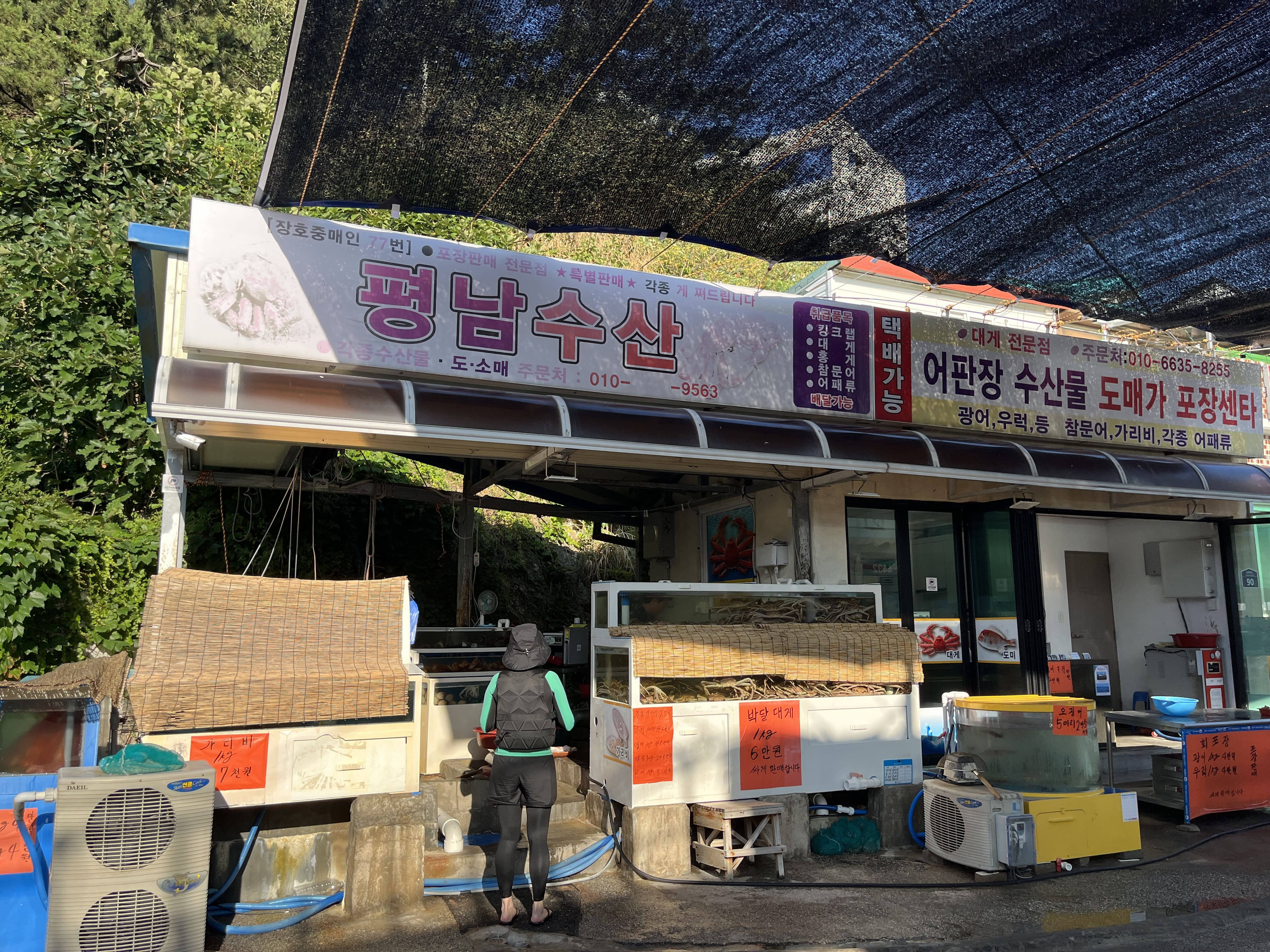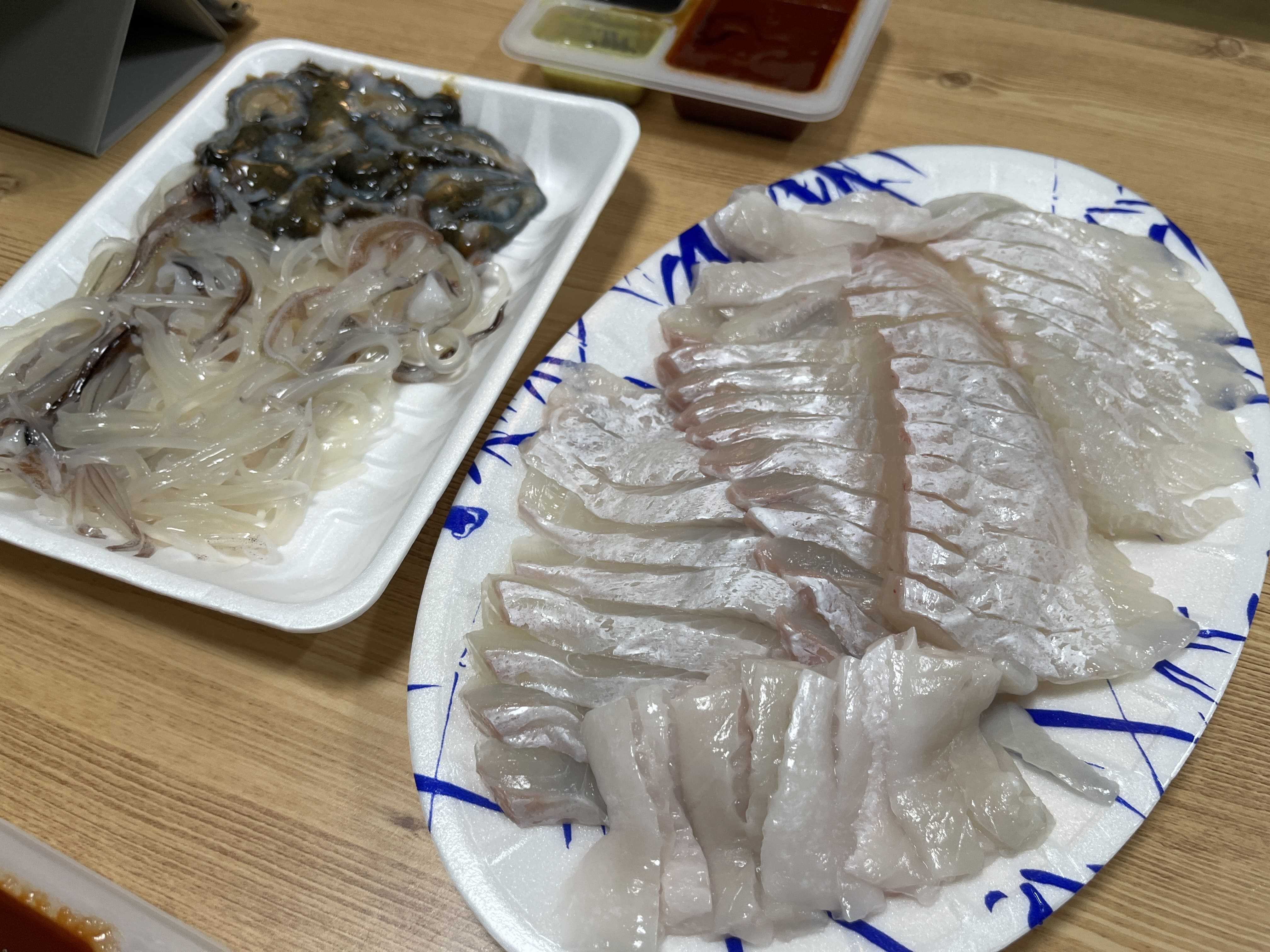 숙소에 가는길에 사장님이 추천해주신 평남수산 이라는 가게에서 회를 떠서 숙소에서 맛있게 먹었다.